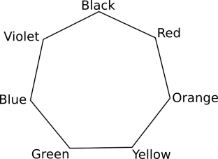 Note: In the pocket universe of the Land of Lost Luggage, the color spectrum is a cycle, so you may swap black crystals (infrared/ultraviolet) with either red or violet.